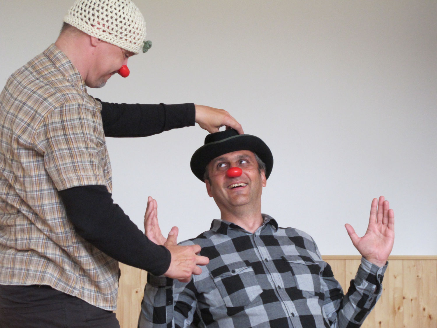 Více informací o clowningu najdete na otevrenyprostor/clowning, kde se také můžete předběžně přihlásit. Více informací o samotné metodě a lektorovi (v angličtině) najdete na stránkách nosetonose/approach